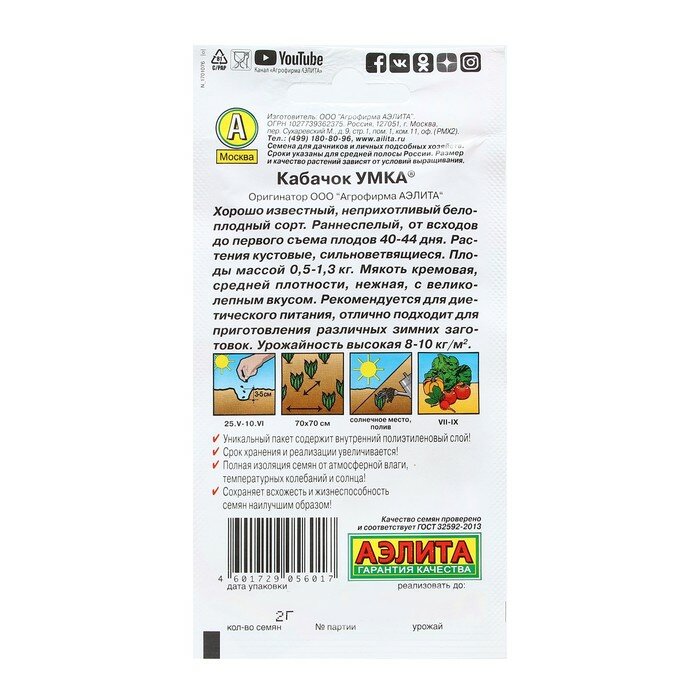 Сервис сравнения цен СкидкаГИД предлагает сравнить цены на товар «Семена Кабачок белоплый "Умка" 2 г (3 шт) Аэлита»