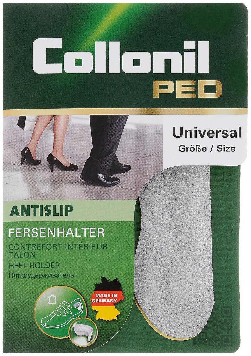Cамоклеющийся пяткоудерживатель Collonil Anti Slip изготовлен из нежной замши. Он предотвращает образование мозолей, фиксирует пятку в обуви. Одна пара Anti Slip применяется только на одну пару обуви (без переклейки).