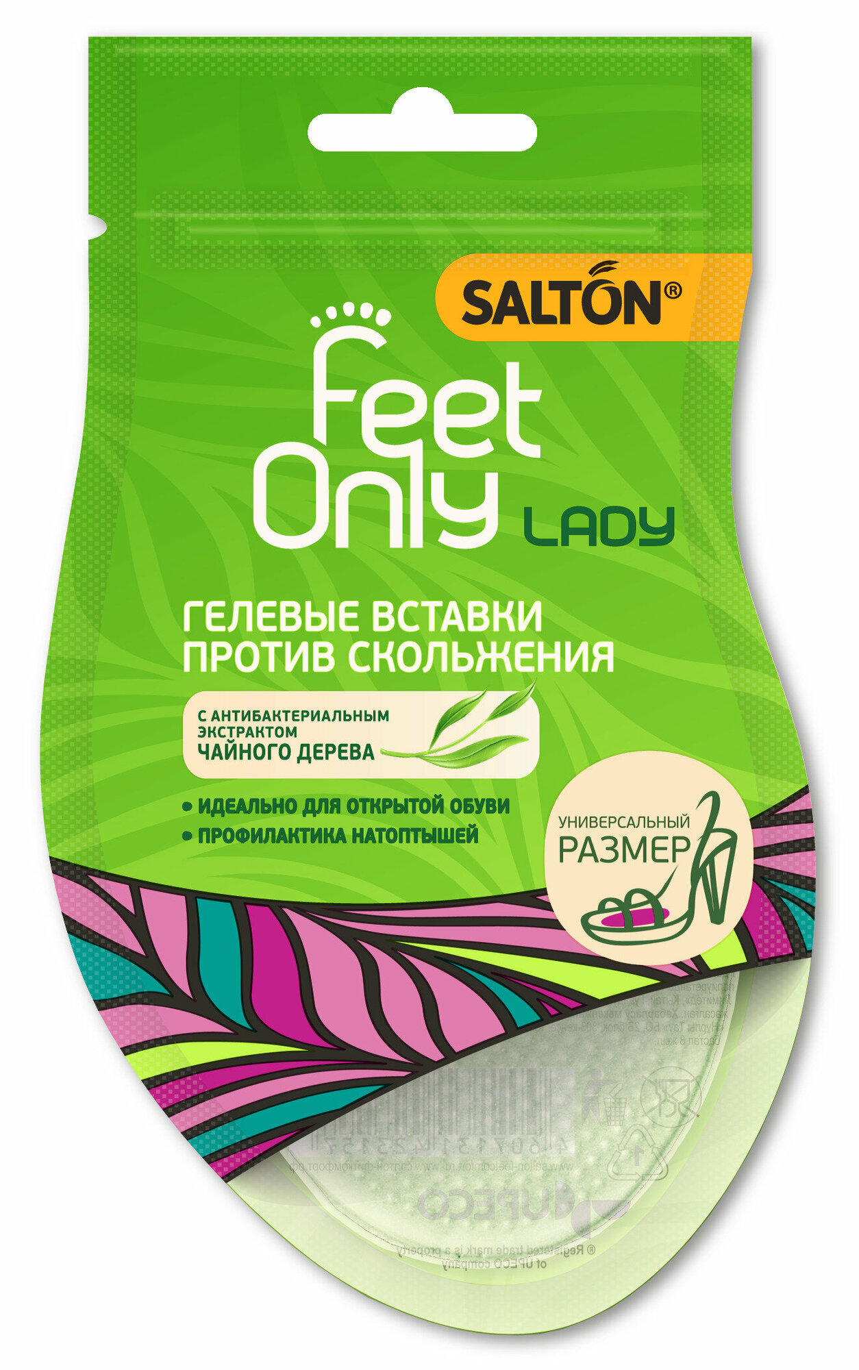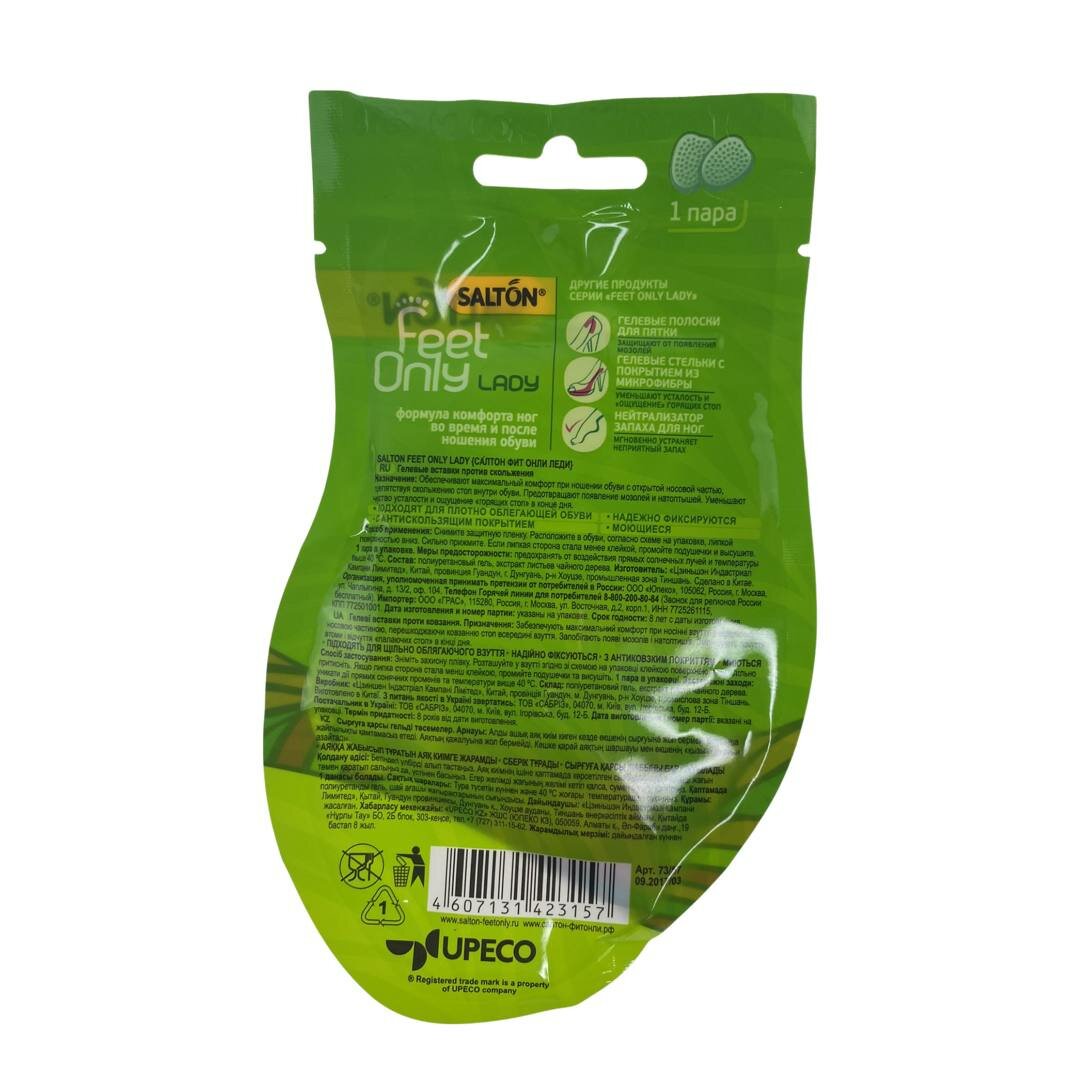 Гелевые подушечки Salton Lady против скольжения предотвращают скольжение стоп внутри обуви и образование мозолей-натоптышей. Благодаря толщине всего 1 мм подушечки подходят для всех видов модельной обуви, включая открытые босоножки.