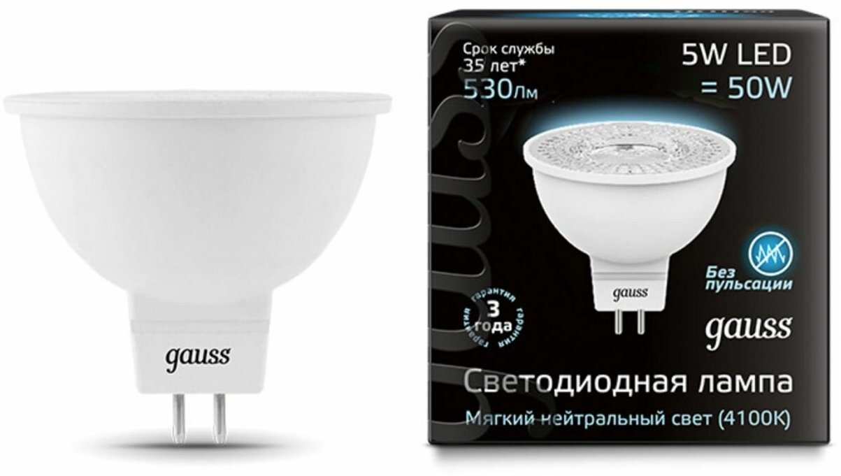 Светодиодные лампы Gauss – это идеальный выбор для тех, кто хочет получить качество европейского уровня по разумной цене. Сочетание высоких эксплуатационных характеристик, использование качественных комплектующих, интересного дизайна и 3х-летней гарантии на всю продукцию – вот, что отличает продукцию Gauss от многочисленных конкурентов.