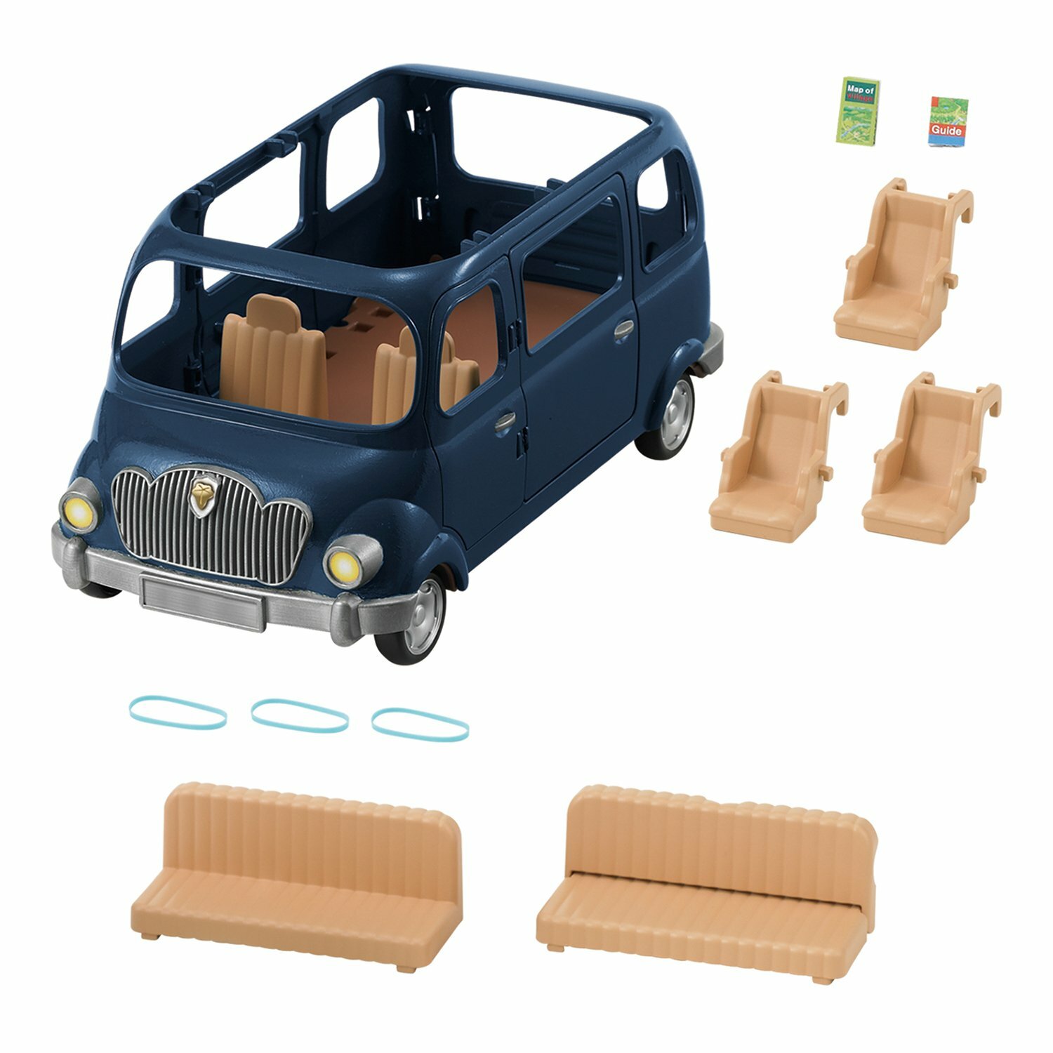 Дружная семья хомячков давно хочет отправиться в веселое приключение. Наконец-то их мечта сбылась! Стильный и красивый семейный автомобиль – отличное транспортное средство для поездок. Хомячки могут навещать друзей и родственников, ездить на пляж, в горы и даже путешествовать по всей стране. Их ожидает множество незабываемых моментов.Транспортное средство включает 7 мест: 4 для взрослых и 3 для детей.Сидения можно перемещать и доставать из автомобиля.Кресла легко устанавливаются благодаря открытому верху фургона. Они ставятся в три ряда.С помощью карт и резинок к большим сидениям крепятся детские автокресла.Фигурки зверюшек в комплект не входят.