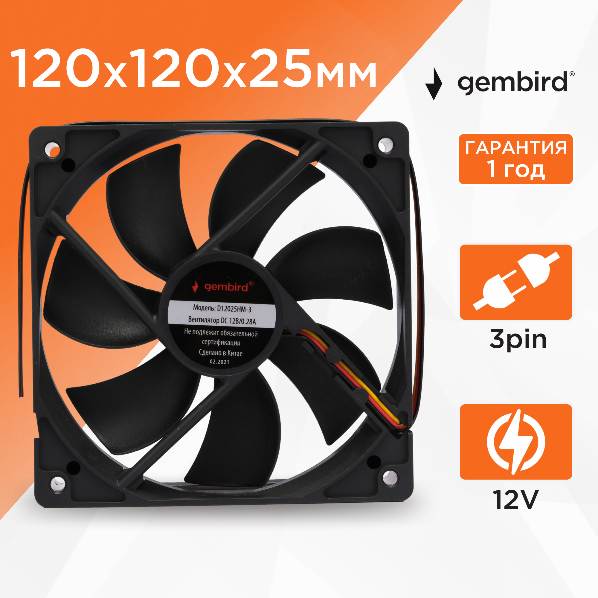 Вентилятор для корпуса Gembird D12025HM-3 черный (размер: 120х120)