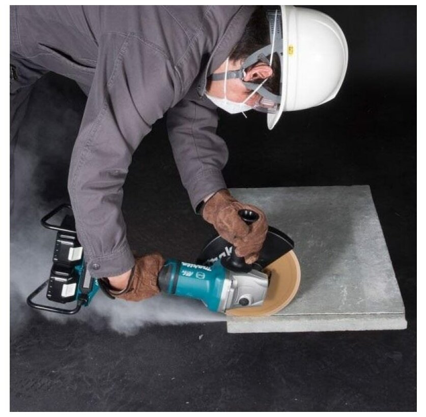 - Аккумуляторная угловая шлифовальная машина для дисков диаметром 230 мм с питанием от 2-х батареек 18 В