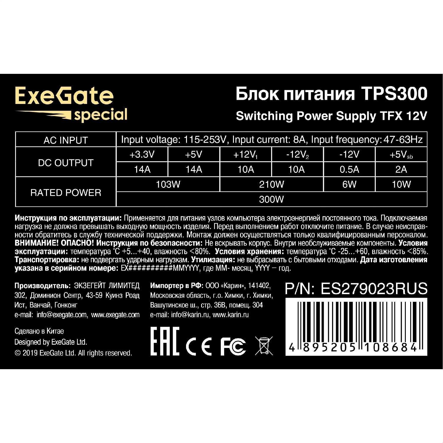 Блок питания Exegate Special TPS300 300 Вт