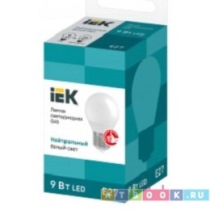 Лампа светодиодная Eco G45 9Вт шар 4000К нейтр. бел. E27 230В IEK LLE-G45-9-230-40-E27