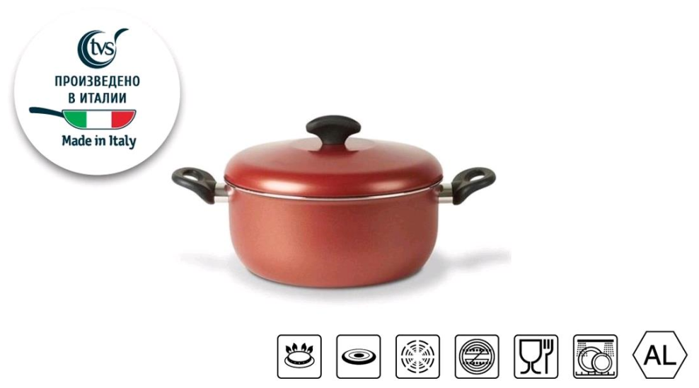 | Прочие особенности и свойства | Антипригарное покрытие Ipertek качества TVS идеально подходит для ежедневного использования;,Специальный алюминиевый корпус с хорошей теплопроводностью;,Линейка включает изделия самой разнообразной формы для креативной атмосферы на кухне;,Привлекательный дизайн благодаря декоративной шелкографии на дне;,Легкая ручная очистка и мойка в посудомоечной машине;,Все антипригарные покрытия TVS не содержат никеля, тяжелых металлов и ПФОА |