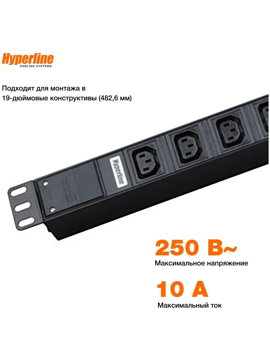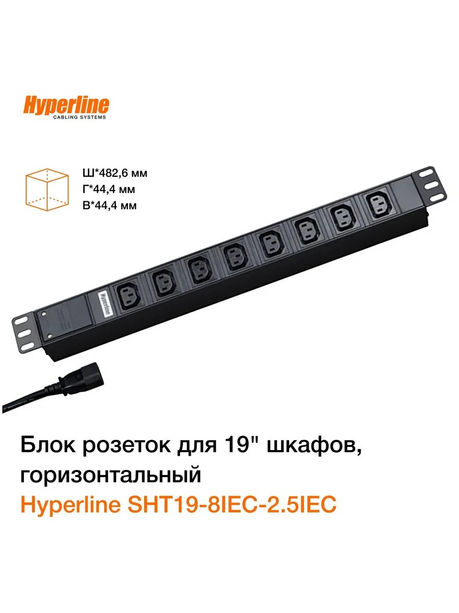 Блок розеток (PDU) Hyperline кол-во розеток:8 (8xC13) 10А черный/серебристый кабель питания 2.5 м (SHT19-8IEC-2.5IEC)