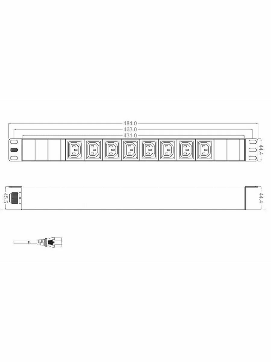 Hyperline SHT19-8IEC-2.5IEC Блок розеток для 19" шкафов, горизонтальный, 8 IEC 320, 10 A, шнур 2.5м