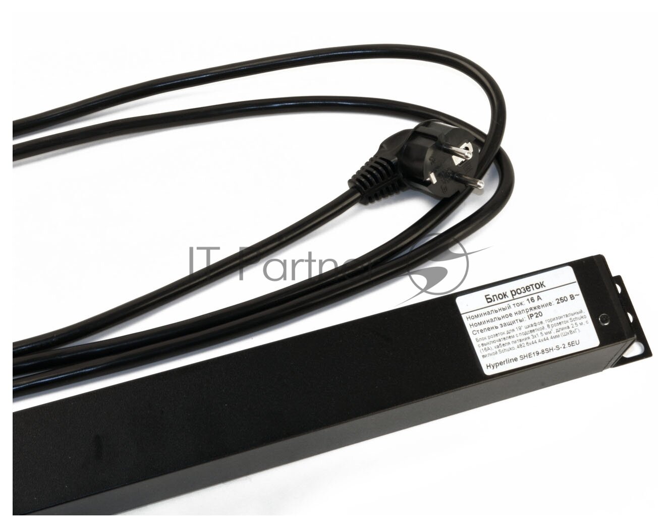 Блок розеток Hyperline SHE19-8SH-S-2.5EU 8 розеток 2.5