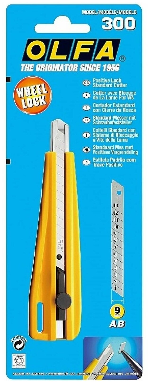 Нож OLFA с выдвижным лезвием 9 мм с фиксатором 300