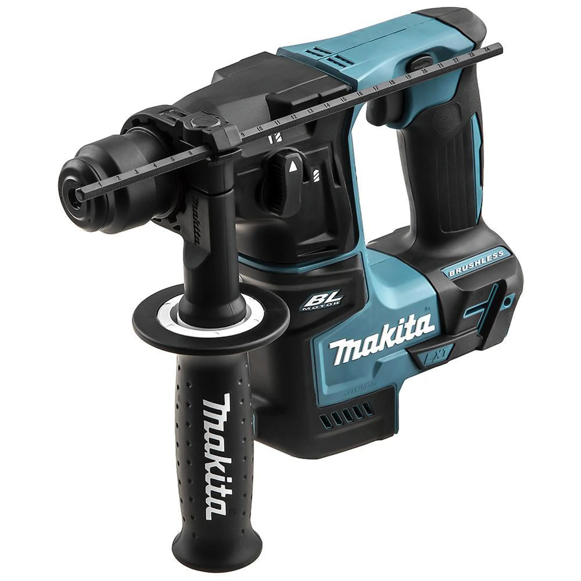Профессиональный аккумуляторный перфоратор Makita применяется для перфорирования в стенах и заготовках, инструмент выполняет сверление, сверление с ударом. Аккумуляторный перфоратор Makita сделан по новой конструкции, где специальные резиновые накладки эффективно гасят вибрацию. Наличие светодиодной подсветки делает аккумуляторный перфоратор Makita инструментом, удобным для применения в условиях недостаточной освещенности. В качестве источника питания применяется литий-ионный аккумуляторный блок с вольтажом 18 В. Эта модификация инструмента поставляется как каркас: без кейса, АКБ и зарядного устройства.