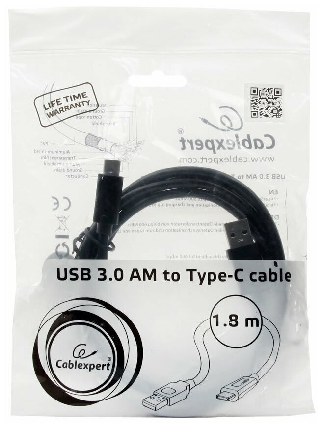 Кабель Cablexpert USB - USB Type-C (CCP-USB3-AMCM-6) 1.8 м белый CCP-USB3-AMCM-6-W