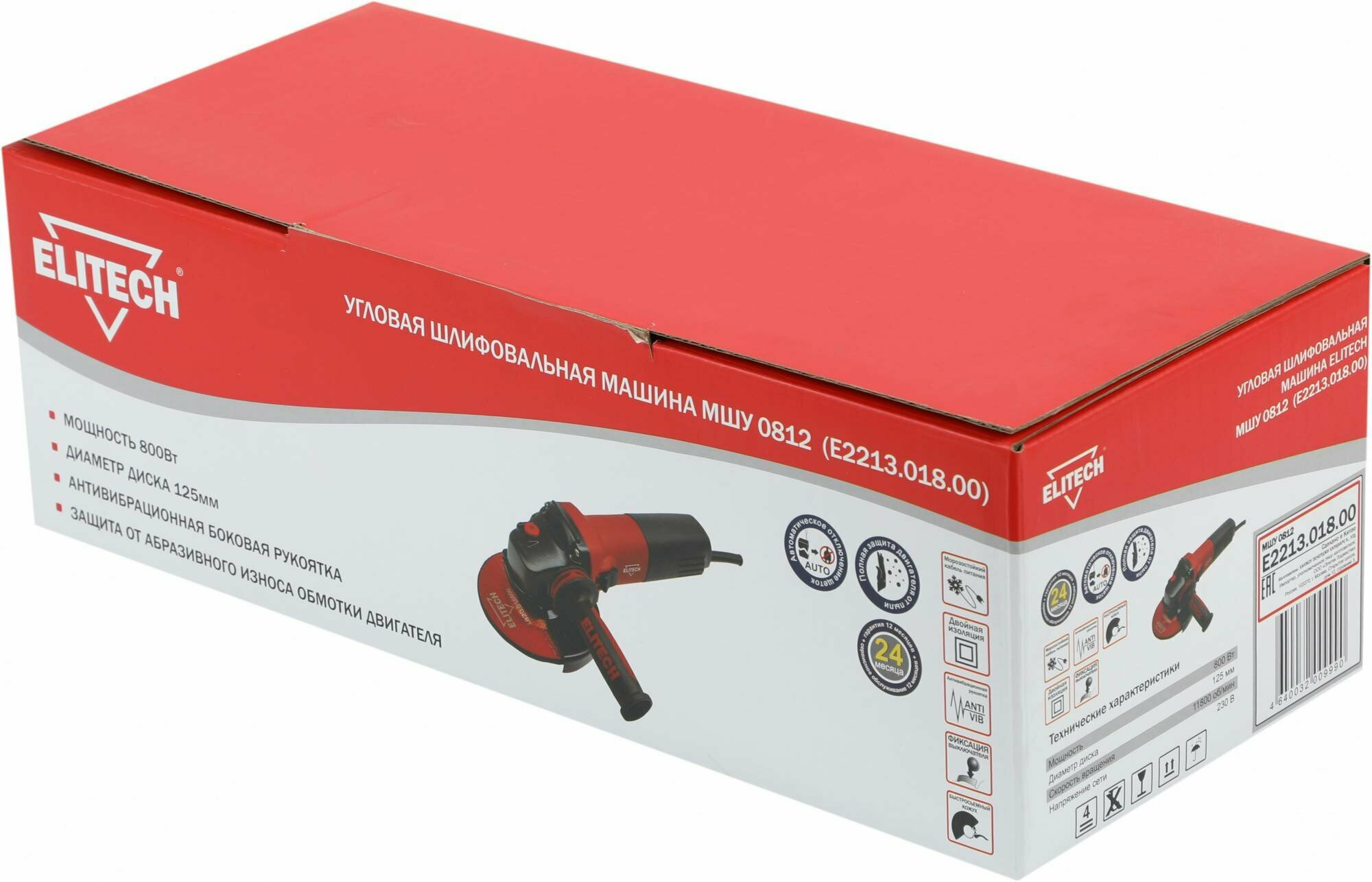 | Прочие особенности и свойства | Шлифовальная машина ELITECH МШУ 0812 - предназначена для сухой резки, зачистки и шлифовки материалов из металла и камня. В качестве рабочей насадки используется диск соответствующего диаметра для данной модели инструмента и соответствующего типа (по металлу, по камню и т.д.) в зависимости от обрабатываемого материала и вида работ. |