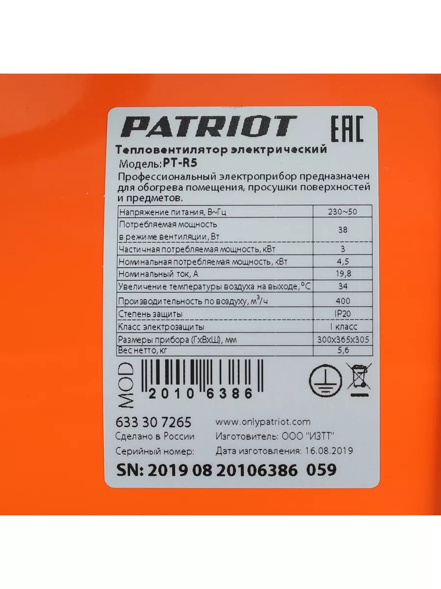 Сервис сравнения цен СкидкаГИД предлагает сравнить цены на товар «Электрическая тепловая пушка Patriot PT-R 5»