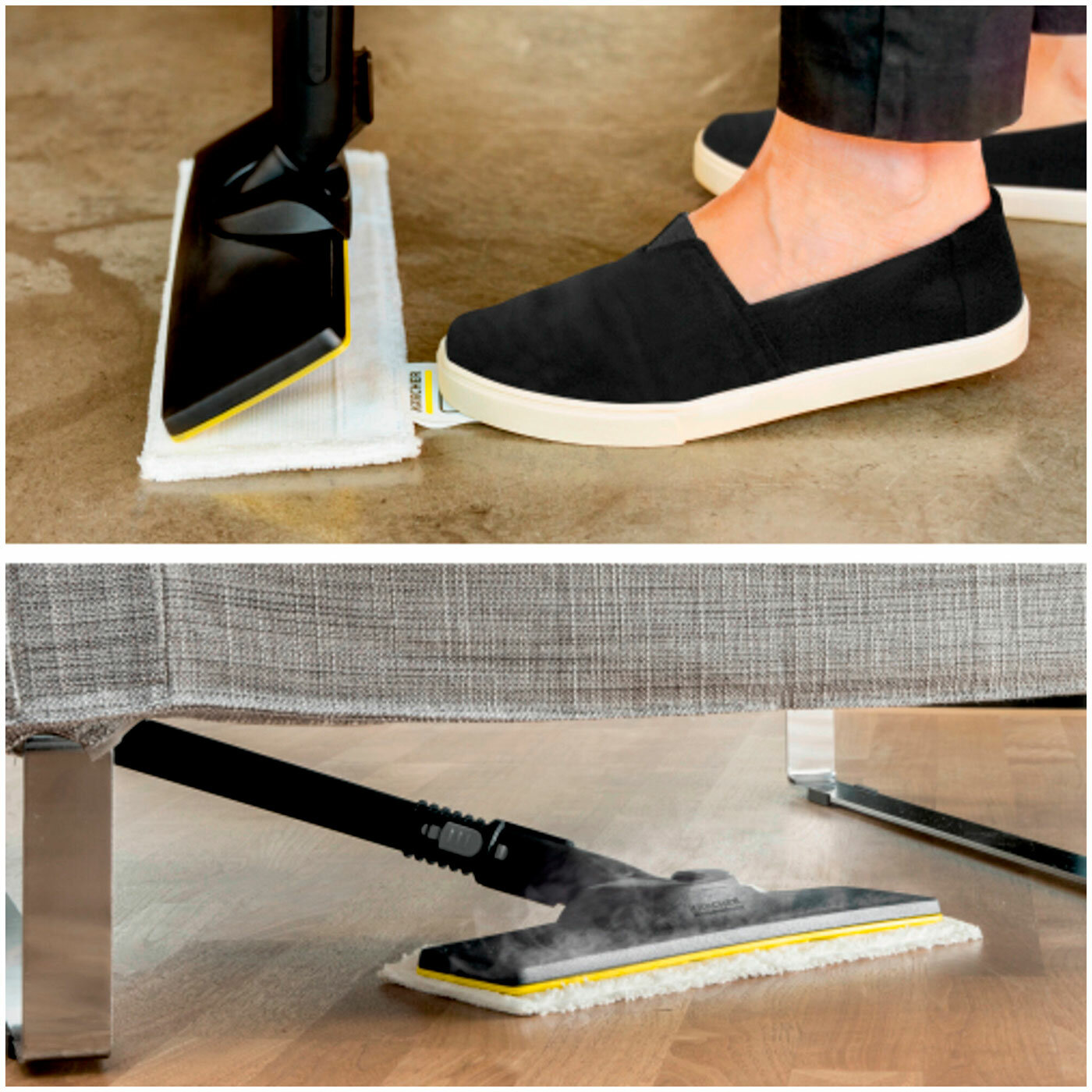 | Аксессуары в комплекте | Предохранительный клапан Регулятор расхода пара, на рукоятке интегрирована воронка для заливки воды Система 2 резервуаров Комплект для уборки пола, EasyFix + удлинительные трубки (2 × 0,5 м) Принадлежности, ручная насадка, точечное сопло, круглая щетка (малая) Микроволоконная салфетка для пола, 1 шт. Микроволоконная обтяжка для ручной насадки, 1 шт. Держатели для принадлежностей и возможность «парковки» Паровой шланг с пистолетом, 2 м Встроенный выключатель Удлинительные трубки (2 × 0,5 м) |