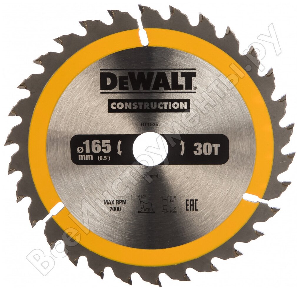 Диск пильный по дереву DeWalt CONSTRUCTION DT1935 165х20мм 30T
