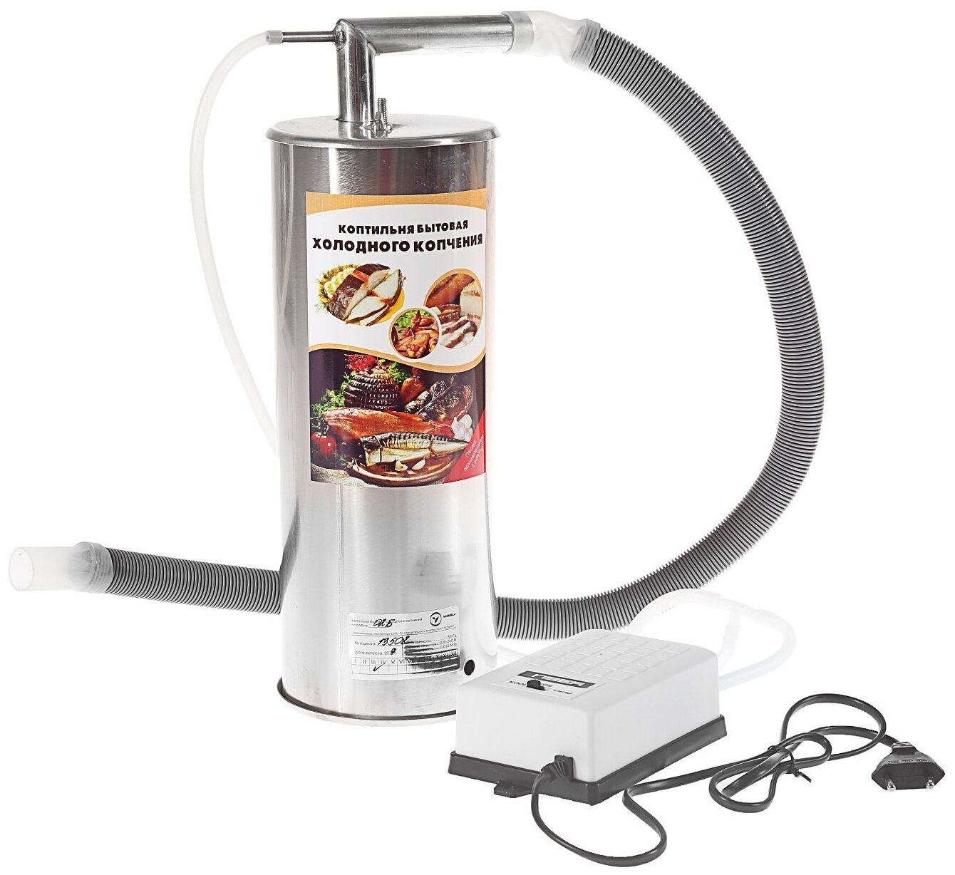 | Комплектация | емкость для копчения, трубка, шланг, дымогенератор, компрессор |