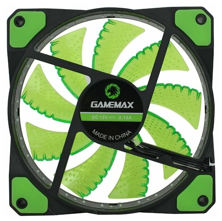 GameMax – вентилятор диаметром 12 см с разъемом 3/4-pin. Данный кулер обеспечивает воздушный поток в 46.5CFM при уровне шума в 23,4 дБ. Максимальная скорость вращения при этом составляет 1100 (±10%) оборотов в минуту. Представленная модель, оснащенная цветной подсветкой (создается 32 светодиодами), отличается потрясающе красивым внешним видом. Гидродинамический подшипник Hydraulic Bearing обеспечивает длительный срок службы данного кулера.