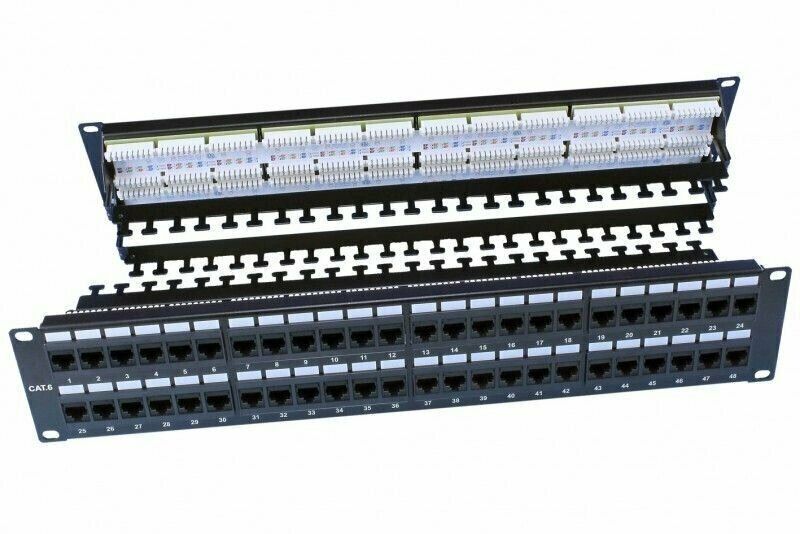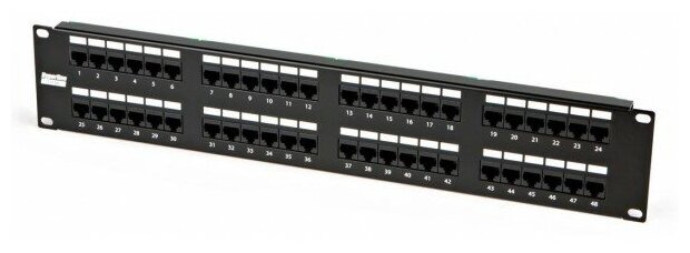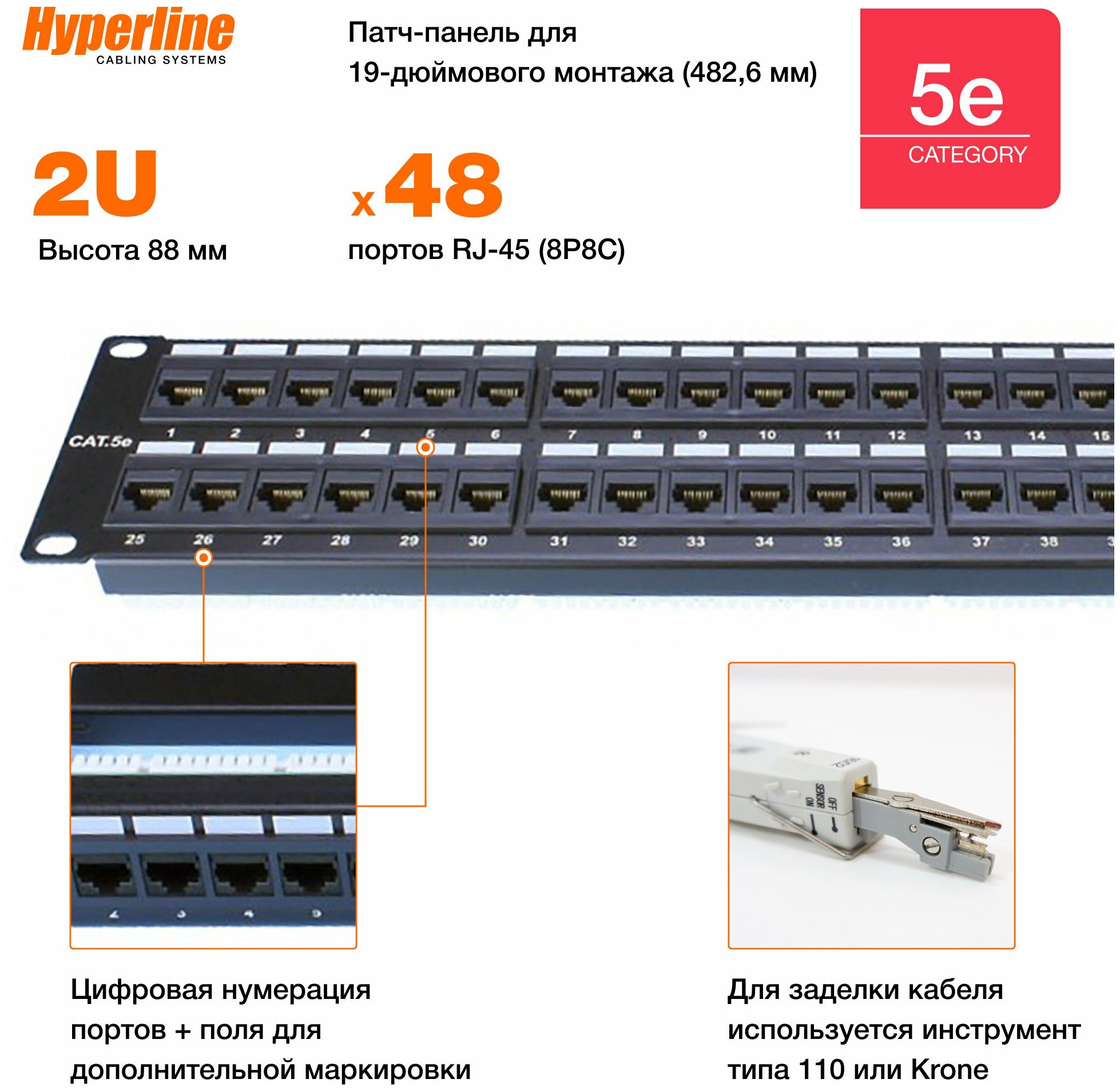 | Описание | Hyperline PP3-19-48-8P8C-C5E-110D Патч-панель 19", 2U, 48 портов RJ-45, категория 5e, Dual IDC, ROHS, цвет черный |
