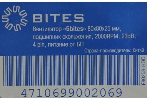 Вентилятор для корпуса 5bites F8025S-HDD черный
