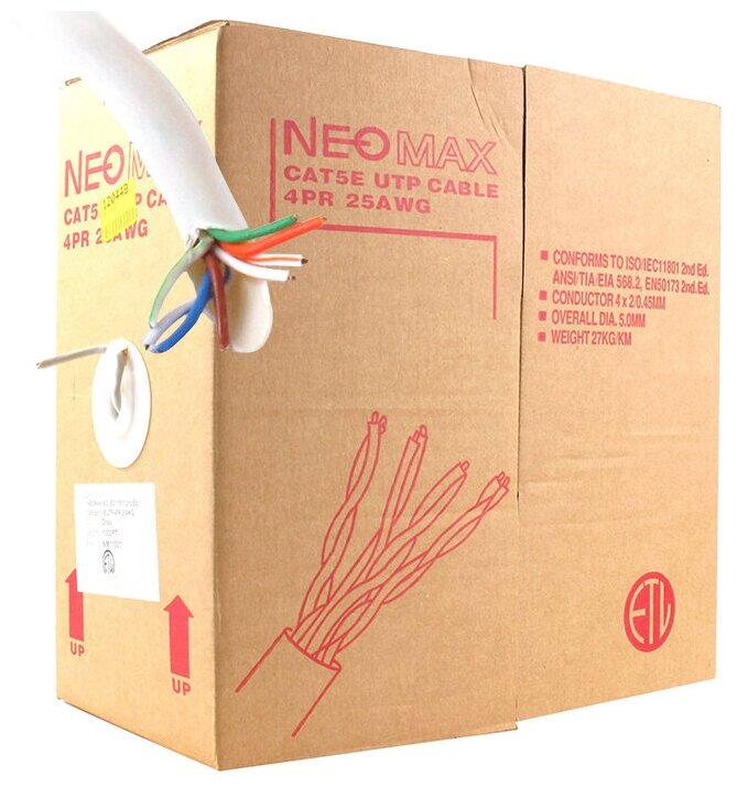 Кабель витая пара фирмы Neomax NM11001одножильный (solid) — один из основных компонентов современных СКС, является самым распространённым решением при создании ЛВС.