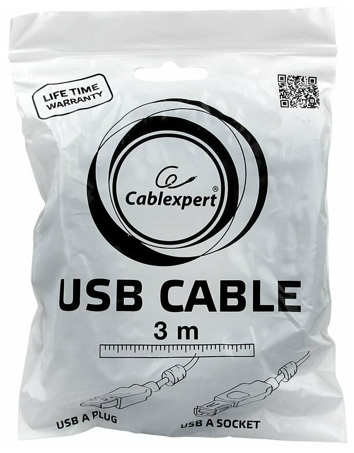 Кабель Gembird USB A-USB A M-F 3м Black (CCF2-USB2-AMAF-10)