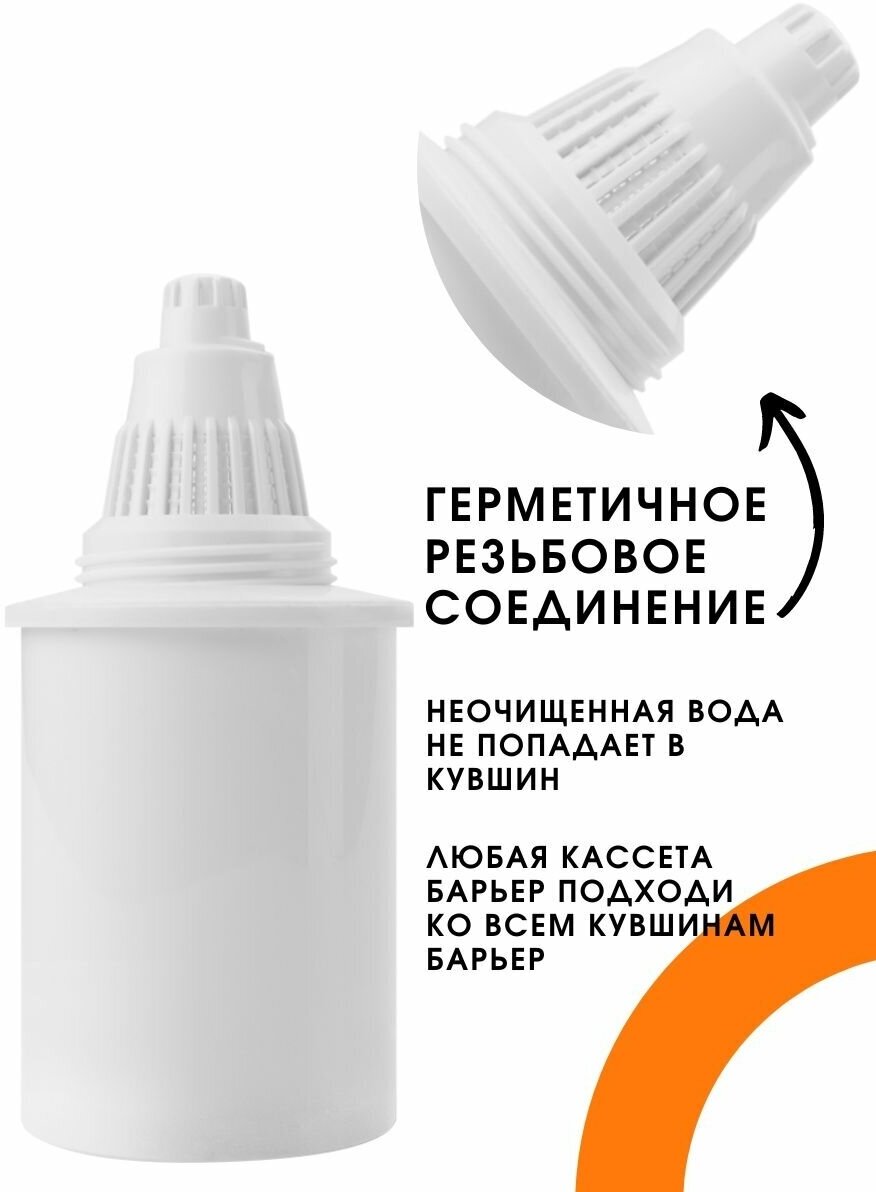 Сменная кассета Барьер 7 подходит для всех фильтров-кувшинов Барьер. Тщательно очищает водопроводную воду от хлора, тяжелых металлов, неорганического железа. В состав кассеты входит пищевой пластик, ионообменная смола, кокосовый активированный уголь, а также уголь, обработанный серебром.