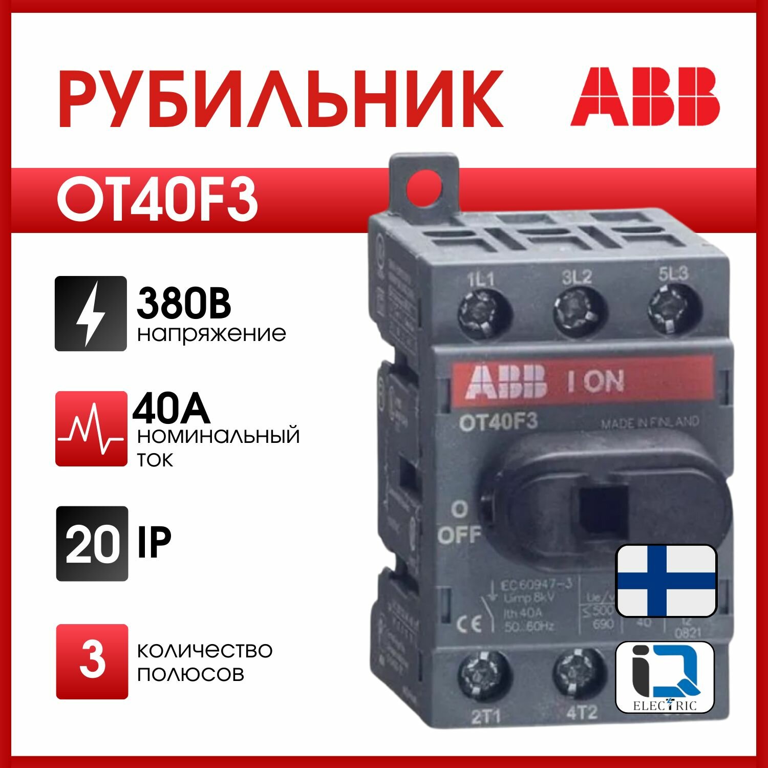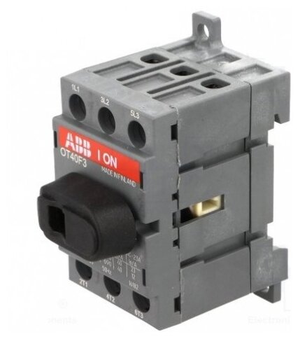 - OT40F3 - Рубильник 3-полюсный 40А (с ручкой) на DIN-рейку или монтаж. плату ABB (1SCA104902R1001)