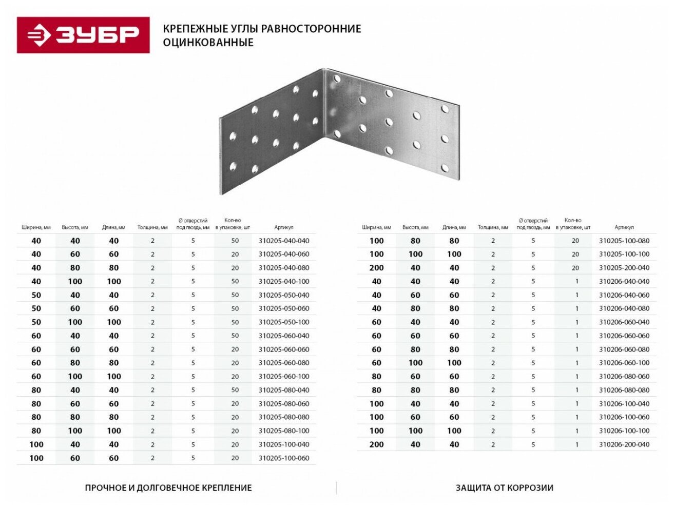 Крепежный угол Зубр МАСТЕР равносторонний 40х80х80мм 1шт УКР-2.0
