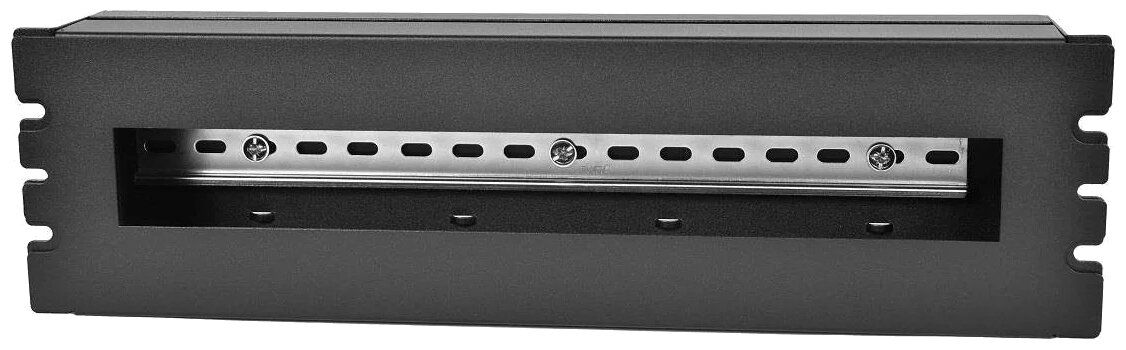 | Прочие особенности и свойства | Панель для установки электротехнического оборудования по DIN 43880. Имеет металлический корпус со съемной передней крышкой. В задней части панели предусмотрены четыре кабельных ввода - 200х15мм. Максимальное количество устанавливаемых модулей типа S (ширина 17,5 мм) - 22 шт. Панель совместима со всеми линейками 19” оборудования.Поставляется в индивидуальной упаковке. Цвет - RAL 9005 черный. |