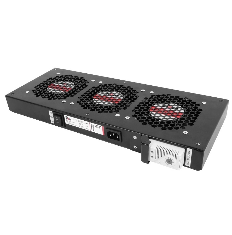 Цмо Модуль вентиляторный 3 вентилятора с терморегулятором чёрный R-FAN-3T-9005