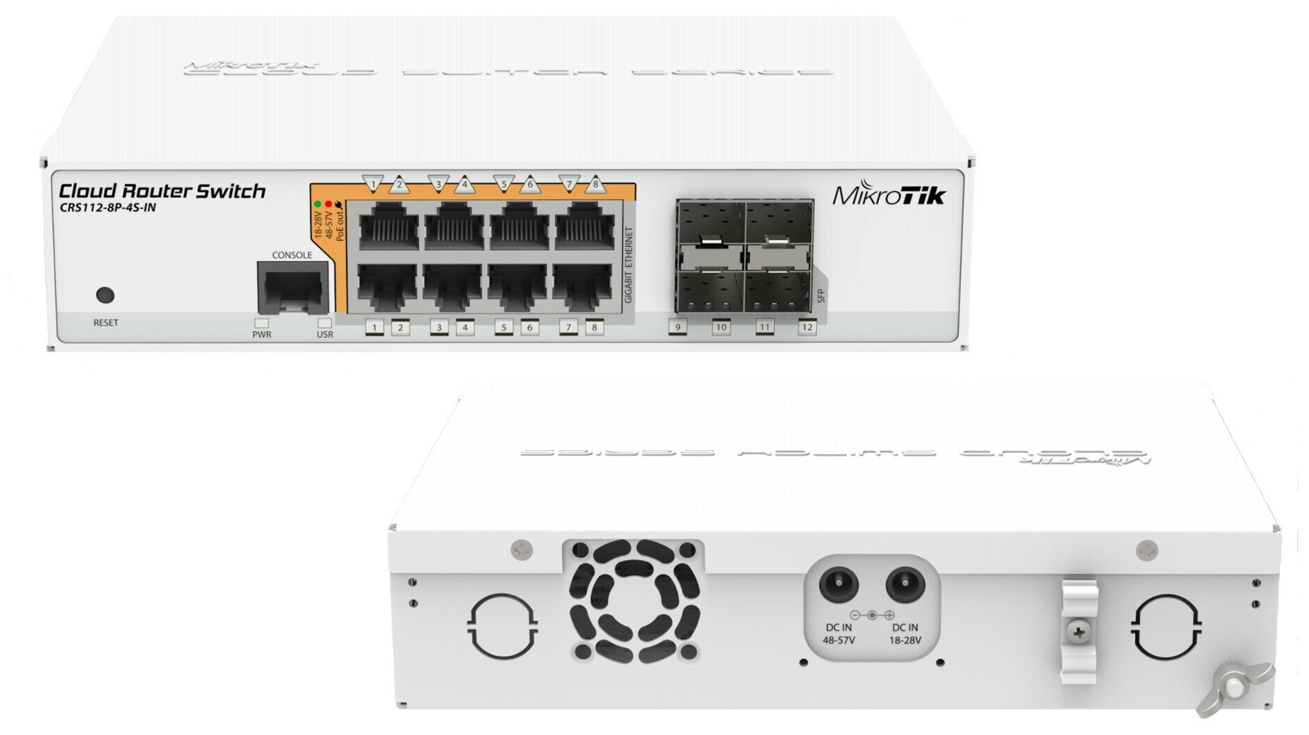 | Дополнительно | MikroTik CRS112-8P-4S-IN - управляемый коммутатор серии Cloud Routing Switch, оснащен двумя блоками питания (45-57V и 12-28V), которые используются для разных режимов питания PoE. Выполнен в настольном металлическом корпусе. Обеспечивает функции коммутатора L3 и маршрутизатора (установлена RouterOS Level5). |