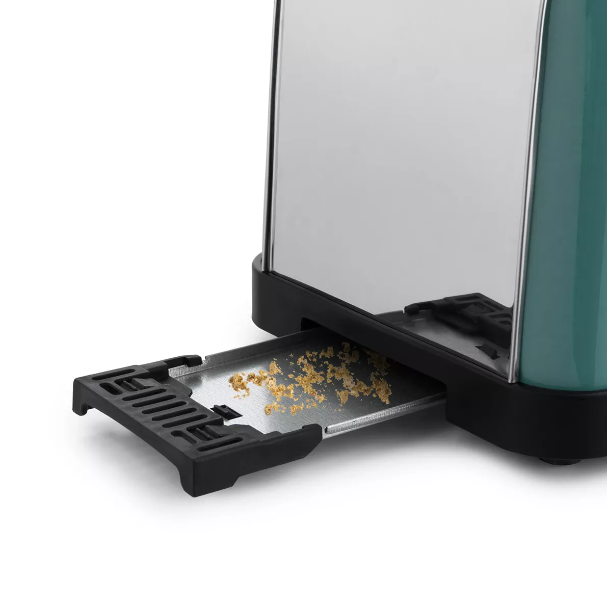 Широкие слоты с функцией экстра-подъёмадля удобного извлечения маленьких тостов. Также тостер оснащён поддоном для крошек.