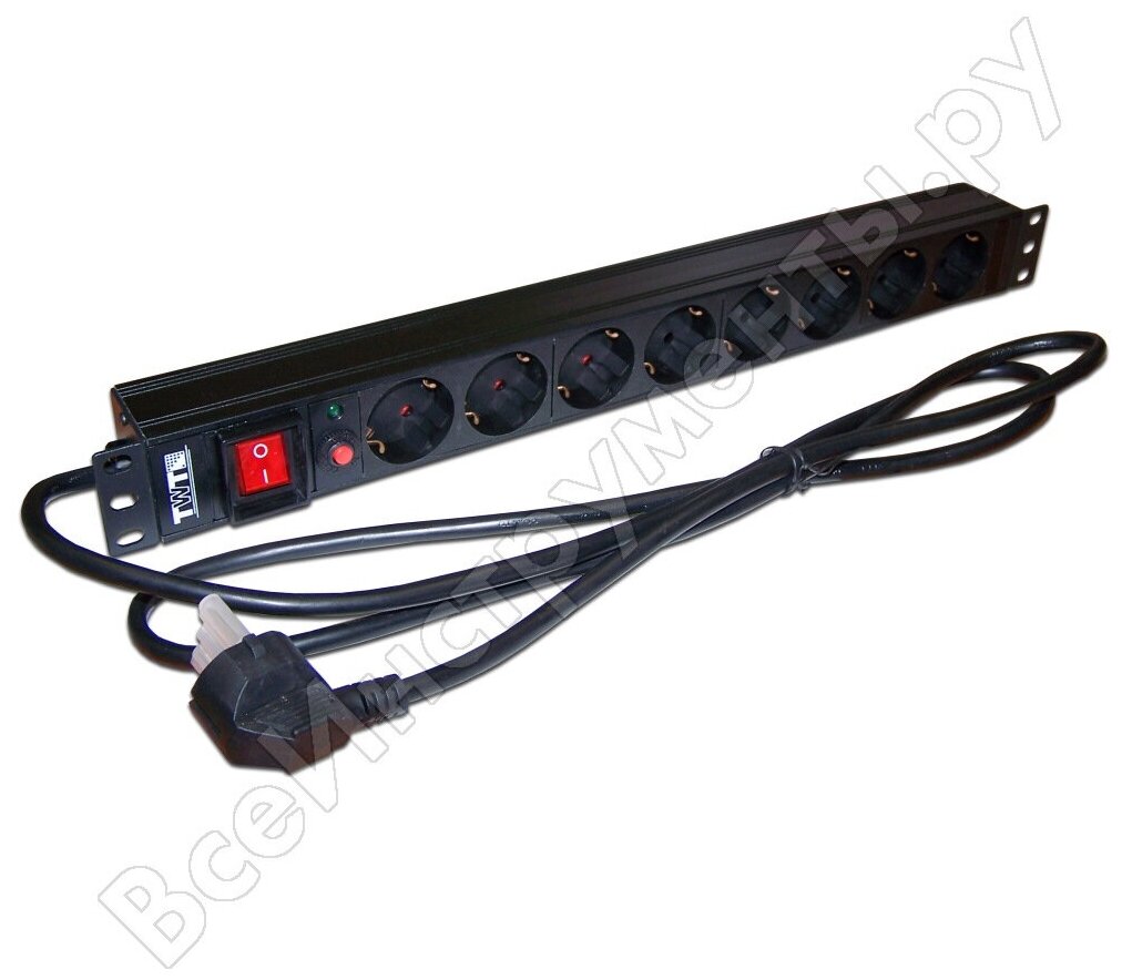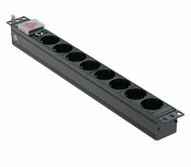 | Прочие особенности и свойства | Блок сетевых розеток специализирован для рассредотачивания электропитания и обороны компов , электрической техники и интенсивного оснащения , оборудованных вилками германского эталона Schuko, в телекоммуникационных шкафах и стойках., , Блок разрешает решить трудности недостаточной длины шнуров питания оснащения , удобства доступа и сервиса., , Блок обустроен кабелем с вилкой Schuko (Гибридный образ E / F, CEE 7/7 Французско-Немецкий 16 А/250 В, с заземлением, сообразно ГОСТ 7396.1-89 - образ С4) для подачи напряжения и 8 розетками под вилки германского эталона (тип F, CEE 7/7 Германский 16 А/250 В, с заземлением), для включения наружного оснащения , , В состав блока заходит прибор защитного отключения. Розеточные гнезда имеют защитные шторки и заземляющий контакт., , Блок розеток содержит высоту 1U и имеет возможность устанавливаться в нормальные 19" шкафы и стойки. Выключатель питания исполнен с подсветкой. |