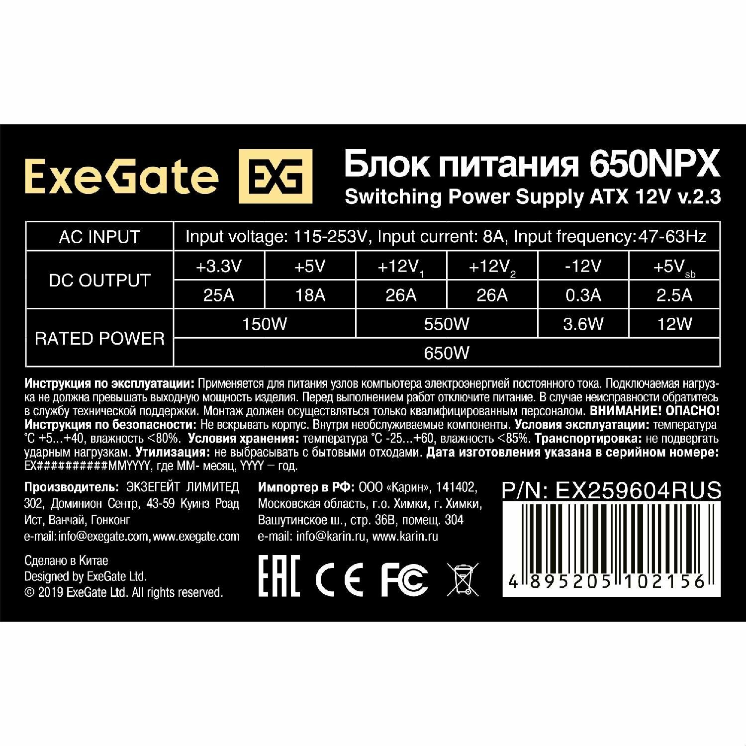 Блок питания ATX 650 Вт Exegate 650NPX EX259604RUS