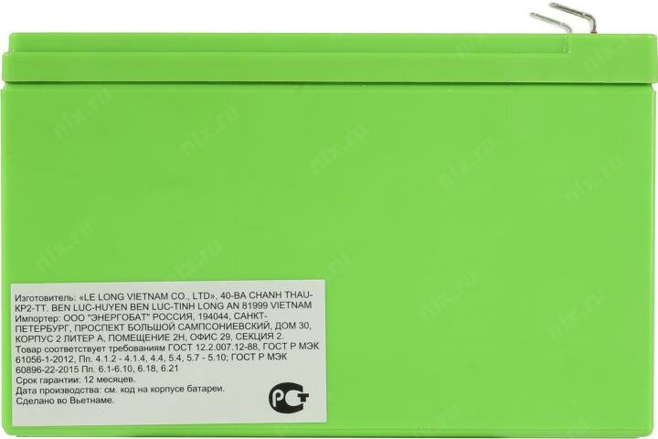 | Тип | Герметичный необслуживаемый свинцово-кислотный аккумулятор |