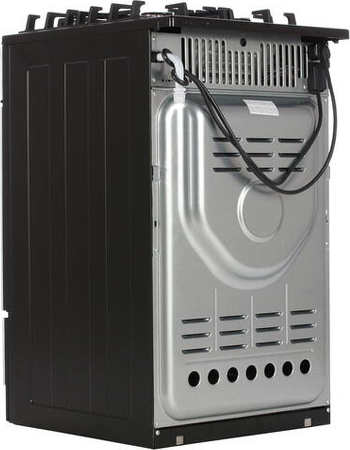 Газоэлектрическая плита GEFEST с шириной рабочего стола 50 см и встроенной электрической духовкой с полезным объёмом 52 литра. Фасад из стекла чёрного цвета с растровым рисунком. Электрическая духовки газовых плиты оснащены мощным электрогрилем, ковекцией, турбо-грилем, нагревом снизу и сверху, терморегулятор для регулировки температуры нагрева и подсветкой. Проволочные направляющие для установки противней. Решётка для посуды из чугуна. Варочная поверхность из 4 газовых конфорок разного размера с электроподжигом встроенным в ручку управления. Снизу кухонной плиты находится выдвижной ящик для хранения кухонных принадлежностей. Встроенный электронный таймер для удобного контроля за временем приготовления. Вертел с электроприводом и шашлычница.