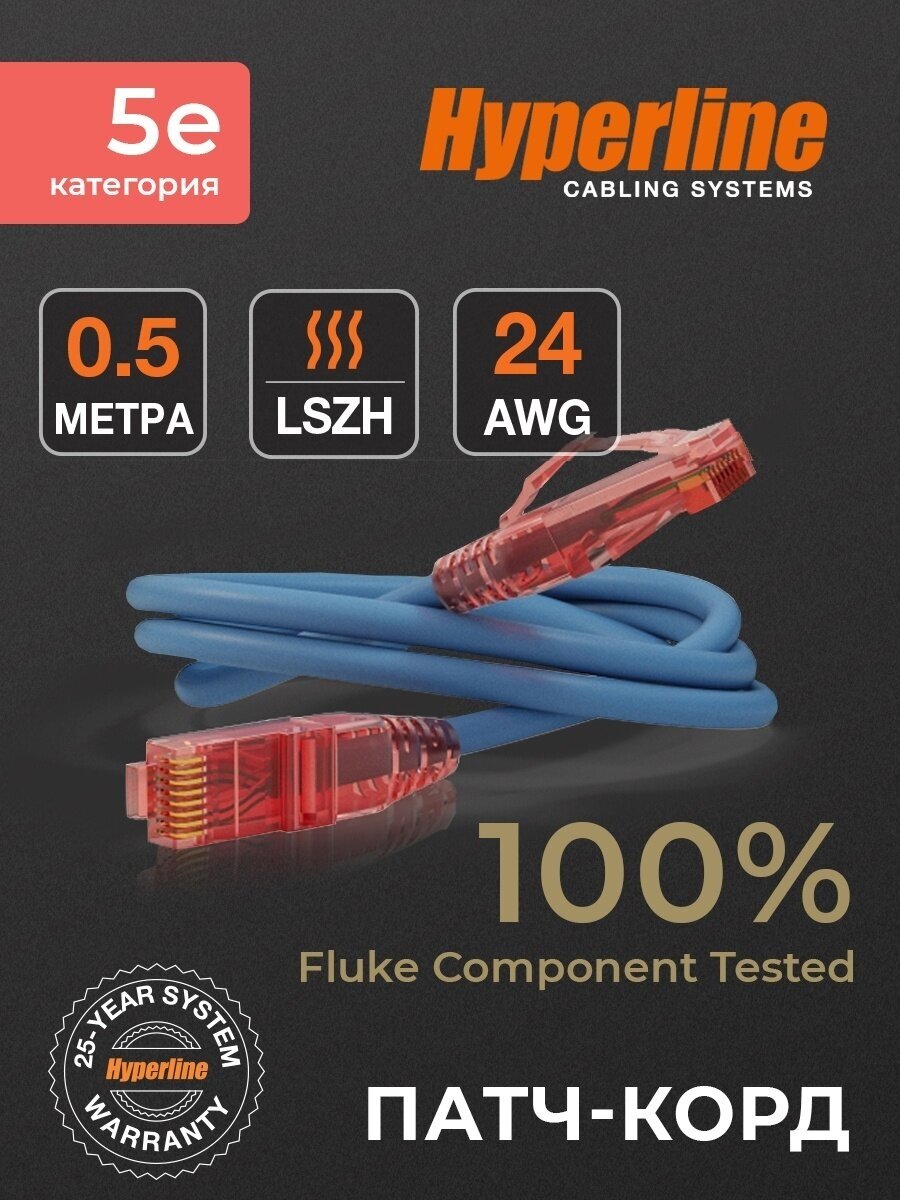 Кабель для компьютера Hyperline PC-LPM-UTP-RJ45-RJ45-C5e-0.5M-LSZH-BL