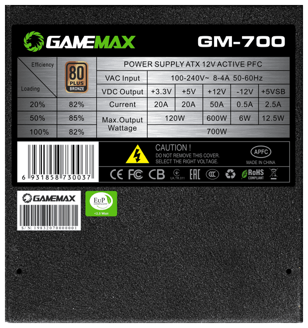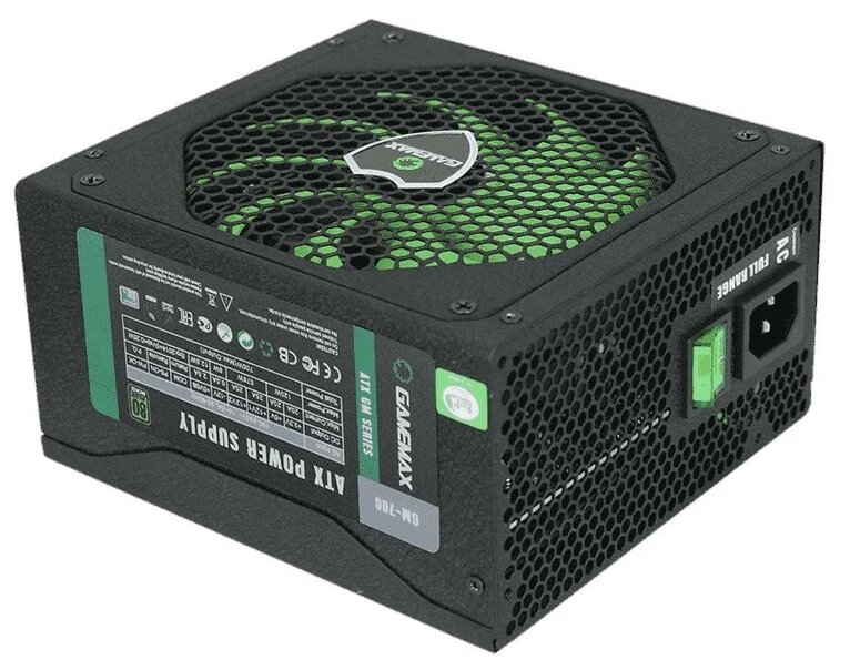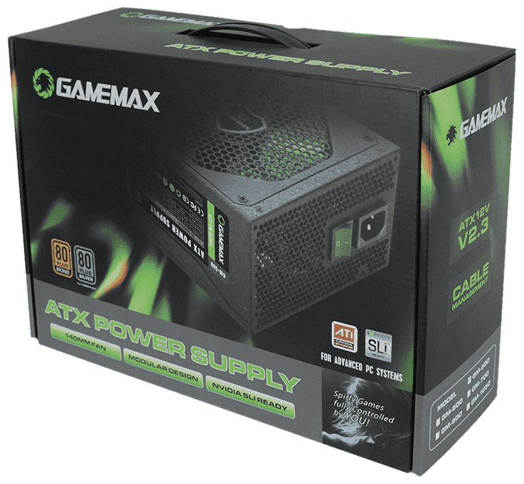 GameMax это качественный источник питания для персонального компьютера, способный снабдить компоненты постоянным током и необходимым каждому элементу напряжением. Мощности рассматриваемой модели будет достаточно для стабильной работы системы игрового класса. За эффективное охлаждение устройства, даже на пиковых нагрузках, отвечает вентилятор диаметром 140 мм. Блок питания имеет разъем 24-pin для материнской платы, 4+4-pin для процессора, 6× SATA для питания жесткого диска и оптического привода, Molex для подключения старых жестких дисков и некоторых других устройств, 2× 6+2 Pin PCI-e для видеокарт. Наличие Active PFC делает БП менее подверженным «провалам» тока, позволяя работать на заряде конденсаторов, что является неоспоримым преимуществом. По энергоэффективности модель соответствует требованиям сертификата 80 Plus Bronze. Оборудована всеми необходимыми системами безопасности, которые уберегут ваши комплектующие от низкого напряжения, высокого напряжения, перегрузок по току, короткого замыкания и т.д.