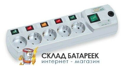 | Прочие особенности и свойства | 4 розетки евро-стандарт,1 розетка российский стандарт,Степень подавления помех:до 30 дБ,Максимальная рассеиваемая энергия:350 Дж |