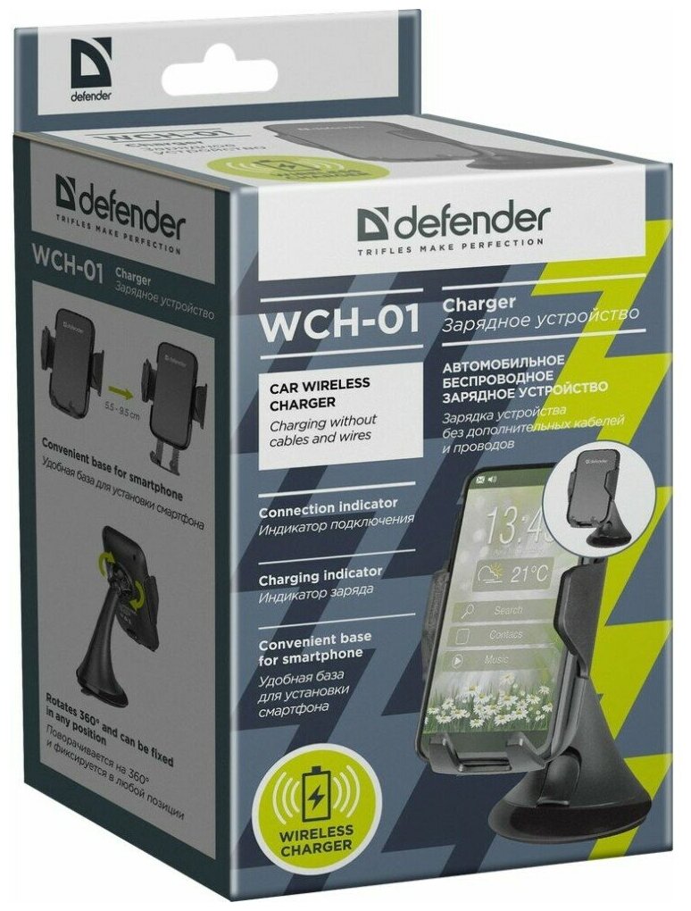 Зарядное устройство автомобильное беспроводное DEFENDER WCH-01 5 Вт вых. ток 1 А черное 83801 513454