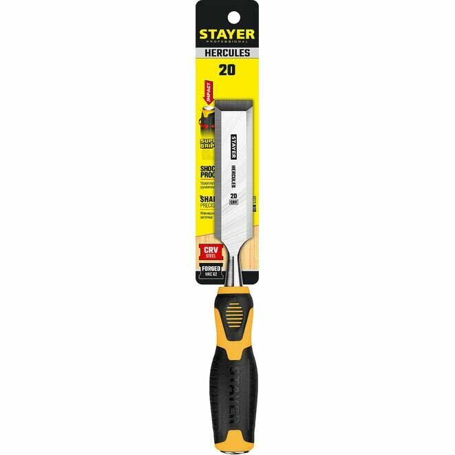 Стамеска STAYER PROFI представляет собой инструмент серии PROFI, состоящий из стальной режущей части размером 20 мм и двухкомпонентной рукоятки. Используется для работ по строганию, выбору пазов и углублений в дереве различных пород.