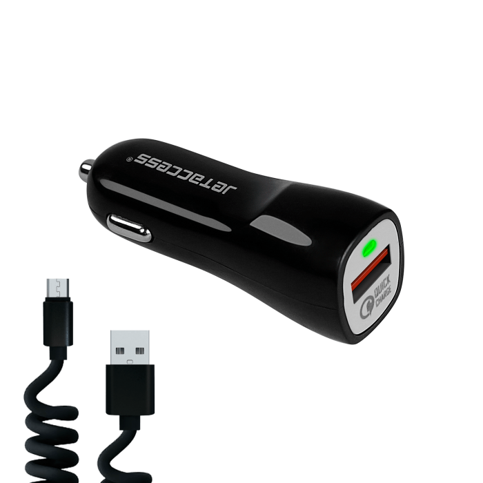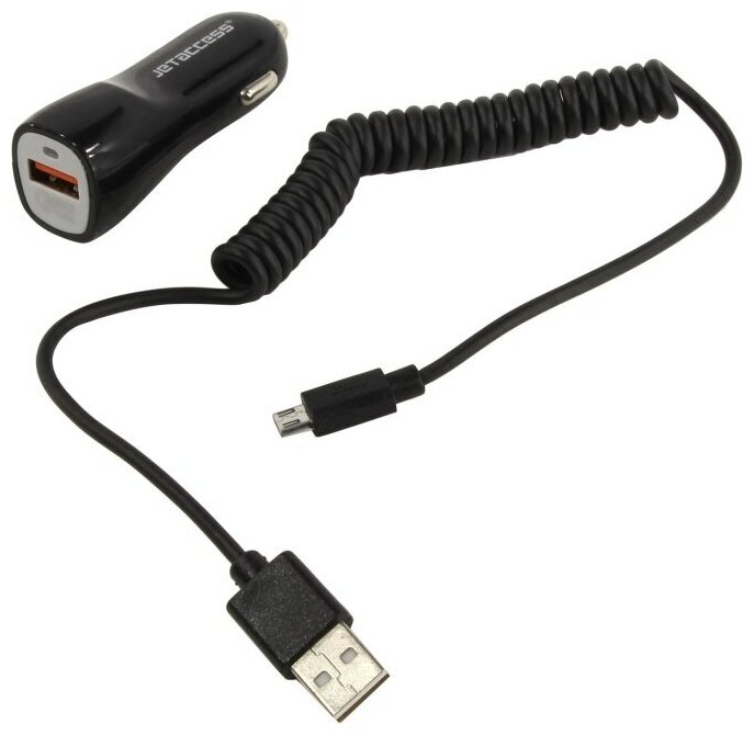 Универсальное зарядное устройство от прикуривателя 12В-24В UC-S19 с поддержкой стандарта быстрой зарядки QC 3.0 (1 USB-порт до 3.0А пружинный чёрный кабель micro USB в комплекте) Цвет - чёрный Jet.A