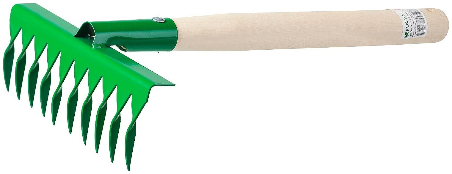 Грабельки садовые с деревянной ручкой, РОСТОК 39614, 10 витых зубцов, 200x62x405 мм