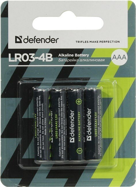 Батарейка Defender алкалиновая AAA LR03 в упаковке: 4 шт. LR03-04B