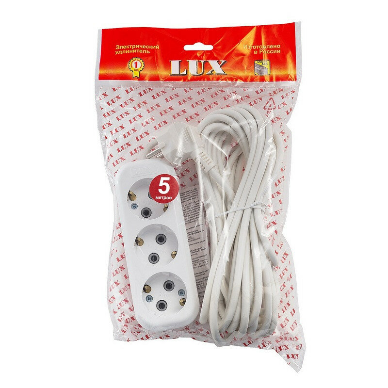 | Прочие особенности и свойства | Трехместный сетевой удлинитель LUX У3-E, 5м - это стандартный бытовой удлинитель с заземлением рассчитанный на подключение к сети переменного тока от одного до трех приборов одновременно. Небольшая длина кабеля позволяет пользоваться прибором при проведении домашних работ:подключение электроприборов и инструментов к сети, которая находится на небольшом отдалении. При создании удлинителей применяются только качественные материалы, которые делают питающий провод износостойким и абсолютно электробезопасным.,Изоляция обеспечивает защиту от попадания влаги и механических повреждений.,Корпус выполнен из АВС пластика, который обеспечивает глянцевую поверхность изделия.,Степень защиты от пыли и воды:IP 20,Число / сечение жил 3х0.75 ,Марка кабеля ПВС |