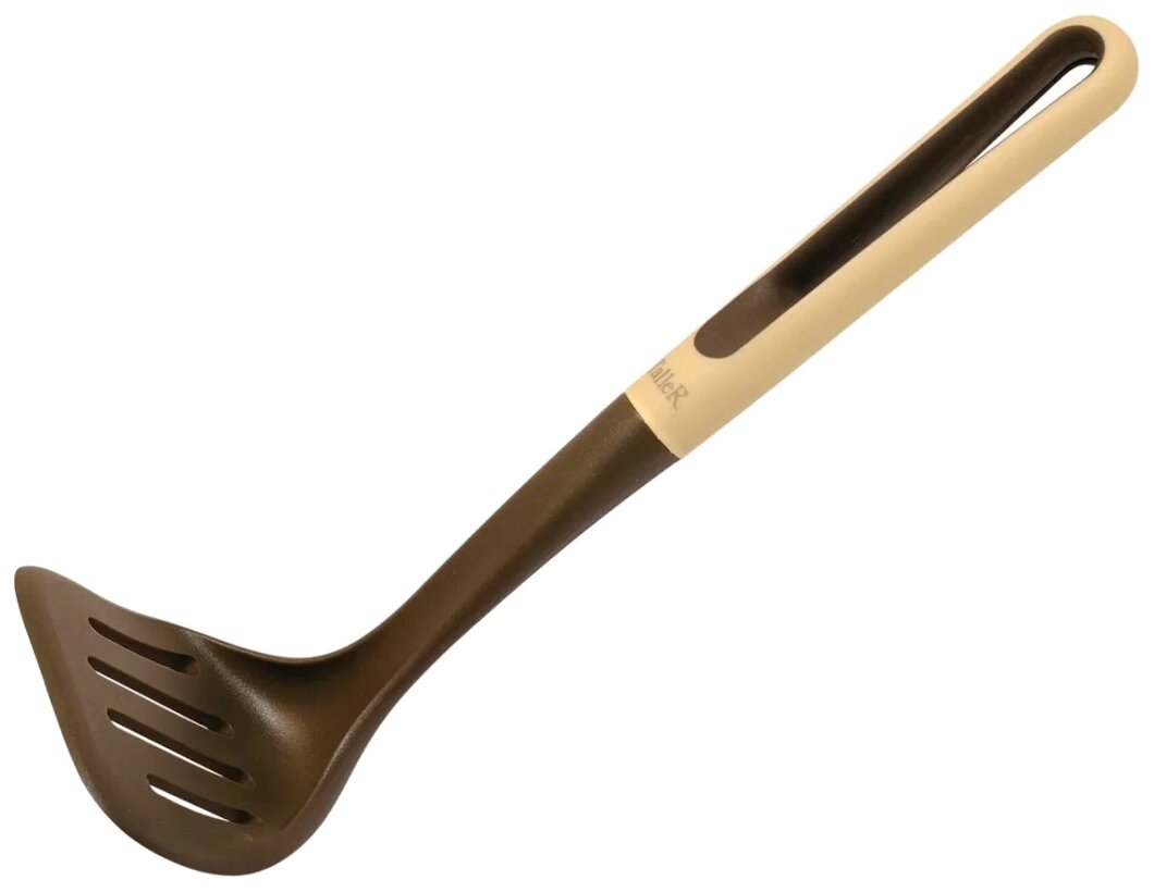 | Прочие особенности и свойства | Устойчивость к температуре до 210°. В ручке предусмотрено отверстие для подвешивания. Можно мыть в посудомоечной машине. |