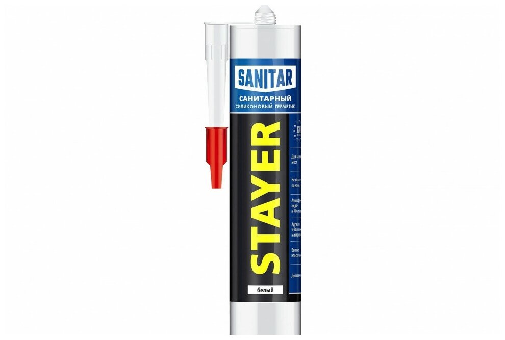| Описание | Герметик STAYER ''MASTER'' санитарный силиконовый, для помещений с повышенной влажностью. |