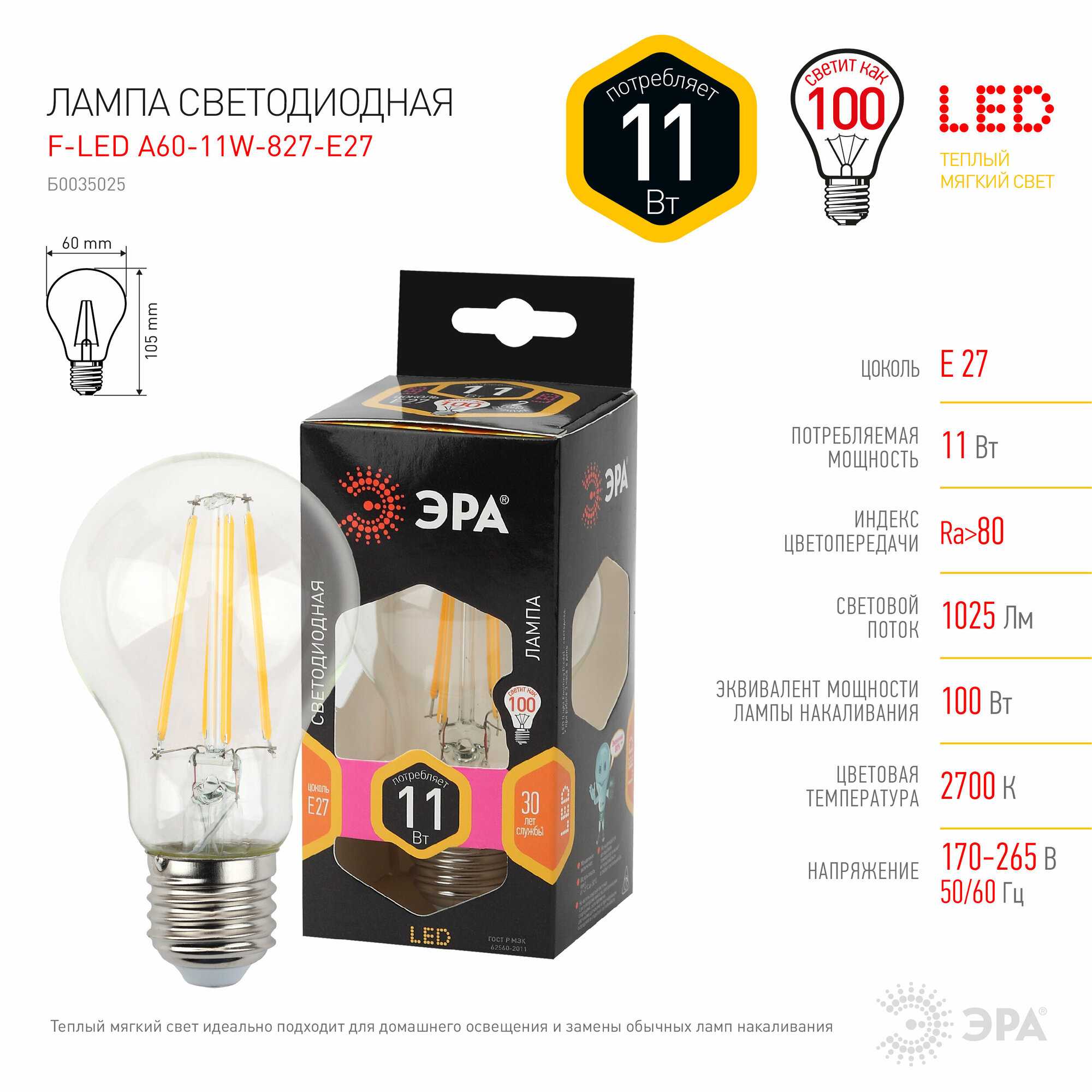 | Модель | Эра A60-11w-827-E27 |