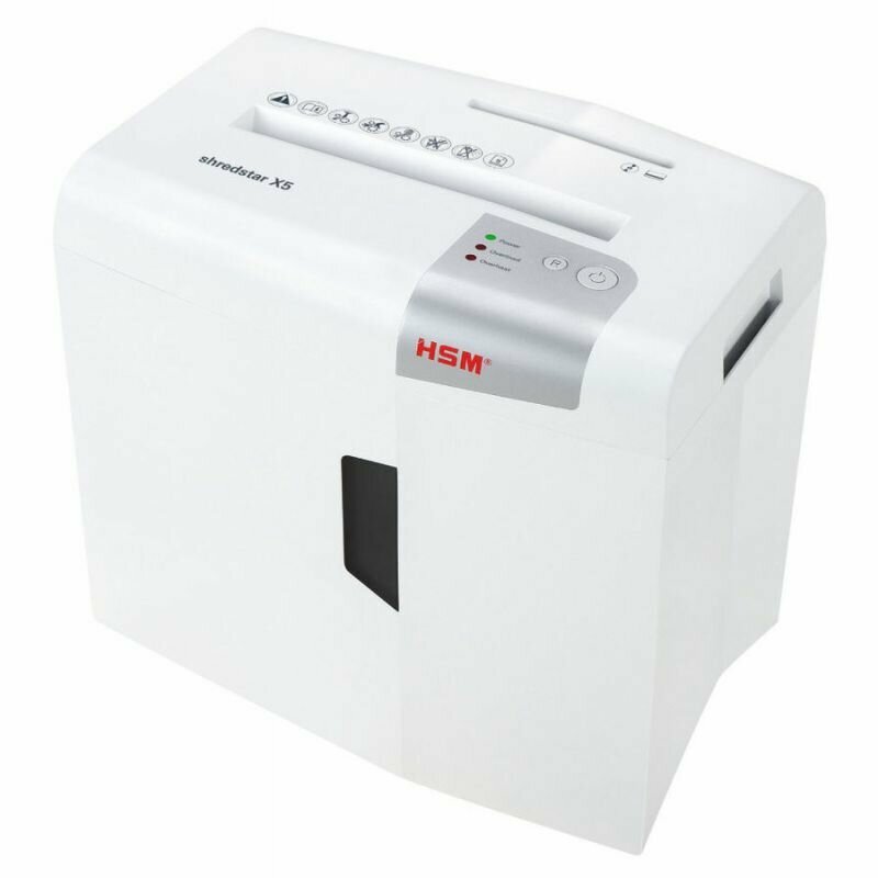 Шредер HSM Shredstar X5-4.5x30 WHITE (DIN P-4 O-1 T-2 E-2 F-1) фрагм.45х30мм6 листов18 литровУничт.скобыскрепкипл.картыCD